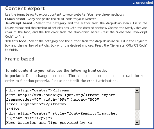The basic version of the code (the raw version) will export all of HomeHighlight’s categories, using the default font settings. Your visitors will not have access to the co-branded newsletter.